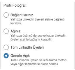 > Aynı zamanda fotoğrafınızın güncel olmasına ve profesyonel gözükmesine de özen göstermelisiniz. Resmiyetten ve kurumsallıktan uzak bir fotoğraf olmamasına dikkat edin. Takdir edersiniz ki, kahve içerken ya da piknikte çekindiğiniz bir fotoğrafı kullanmak pek de uygun olmaz. (LinkedIn profil fotoğrafı boyutu: 400×400 piksel) Yapılan bir araştırma insanların kendi fotoğraflarının olduğu profillere tıklanma oranının 7 kat daha fazla olduğunu göstermektedir.