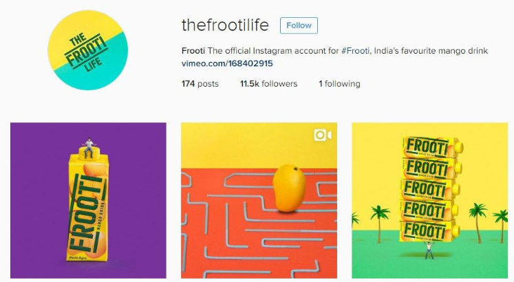 Instagram’da dikkat çekmek istersiniz. Hindistan’ın ünlü içecek markası Frooti görsek içeriklerde farklılaşmayı ve kendi stilini yansıtmayı başarabilen bir marka. Tüketiciler, Frooti’nin herhangi bir gönderisini gördüğü anda markaya ait olduğunu anlayabilir.